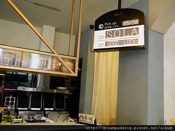 SOLA是採自助式的,先拿MENU,然後找座位,畫單之後再去結帳,然後再拿著小型震動叫號器回座位等待,等餐點好了再取餐,跟麥當當一樣,吃飽之後要自己收拾到回收台喔!