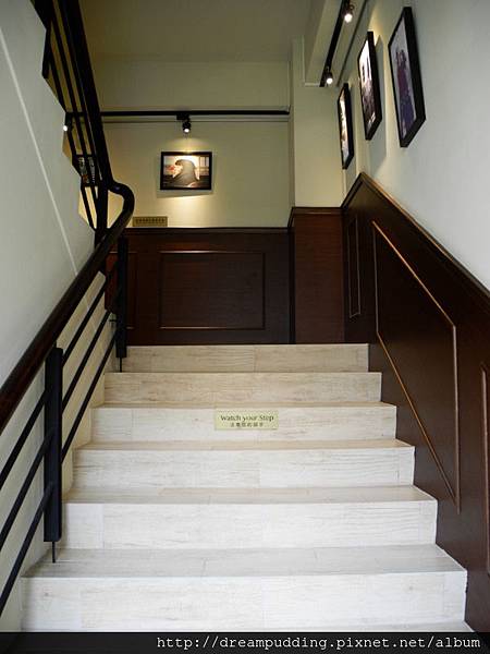 往2樓的樓梯間擺放了許多畫作,而且燈光打得也好,還蠻詩情畫意的,很有質感。