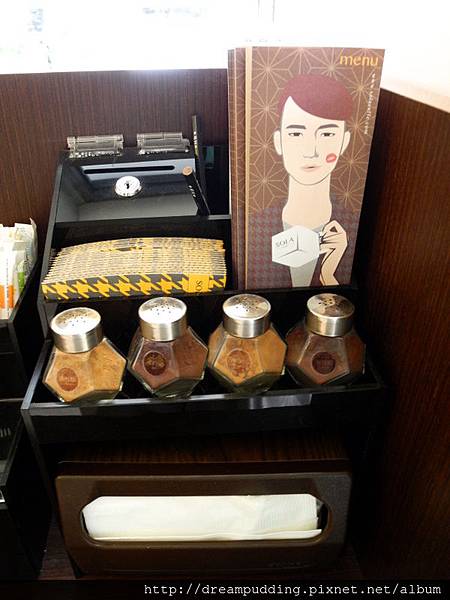 MENU跟調味料還有紙巾跟餐具都在同一區塊,跟星巴克一樣。