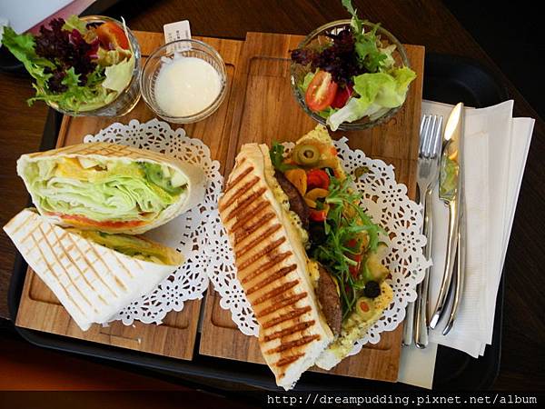 等了一陣,餐點來了,而且是用木板喔!感覺就很有質感。