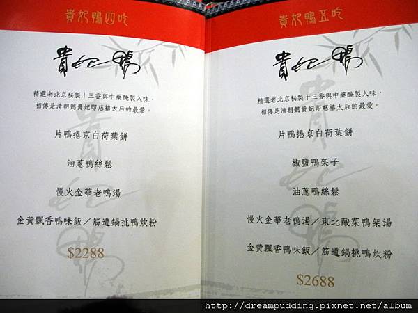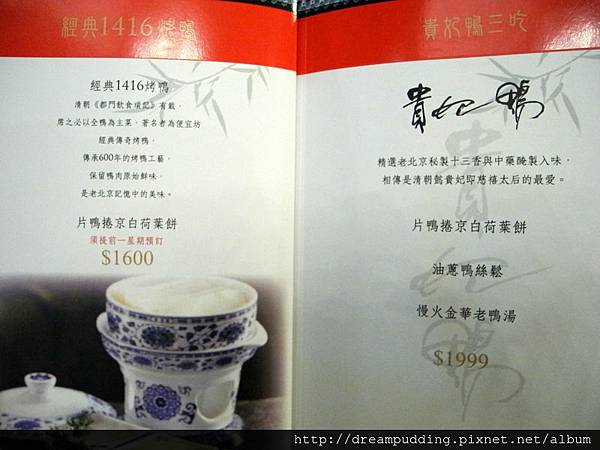 MENU組合有許多種,有針對烤鴨的幾吃。
