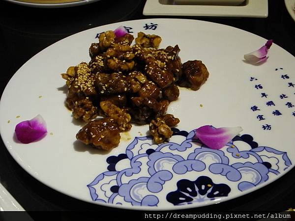 醬爆桃仁雞丁,入味且口感軟嫩帶Q,鹹甜鹹甜的,還有核果仁增加口感,我超喜歡!是說在菜餚上面撒花瓣好美,我以後煮菜也要這樣,畢竟我廚藝不行,就只能靠擺盤取勝了(握拳)