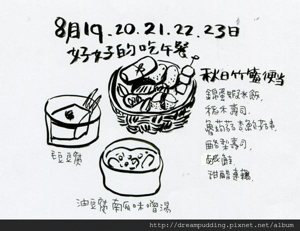 每日的午膳會以手繪圖方式公布在FB粉絲頁上,我以後煮飯也要這樣預告給未來的另一半看,那我到底是先去學畫畫還是先去學烹飪呢