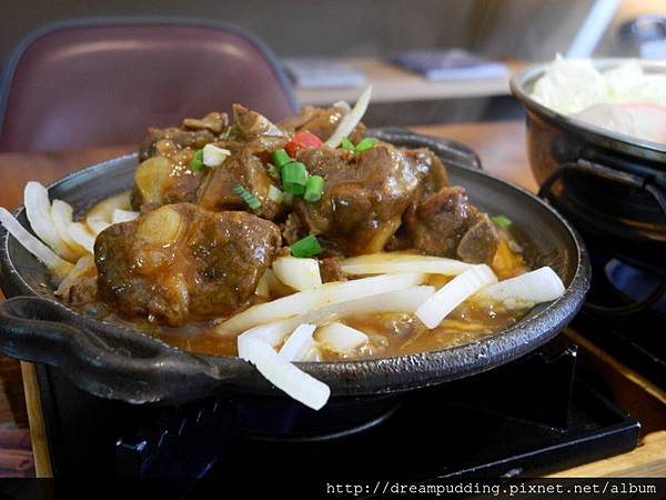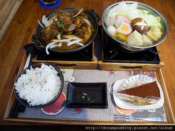 一鍋一燒,有日式小火鍋搭一主菜,還有白飯跟蛋糕,主菜我選的是無錫排骨,NT238元。