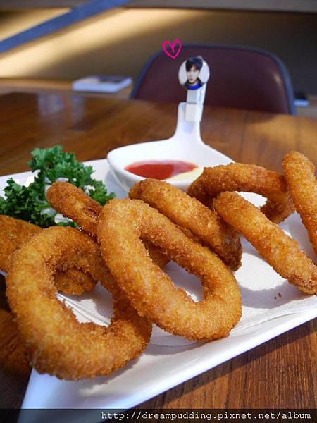 洋蔥圈NT60元,酥燙且不油膩,挺好吃的。