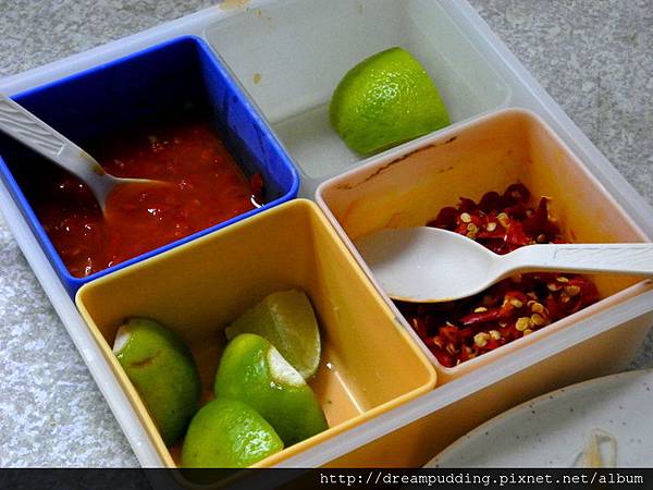 餐點都很快就上桌了,還會附上佐料,視顧客喜好自行添加。