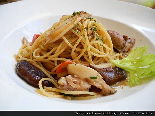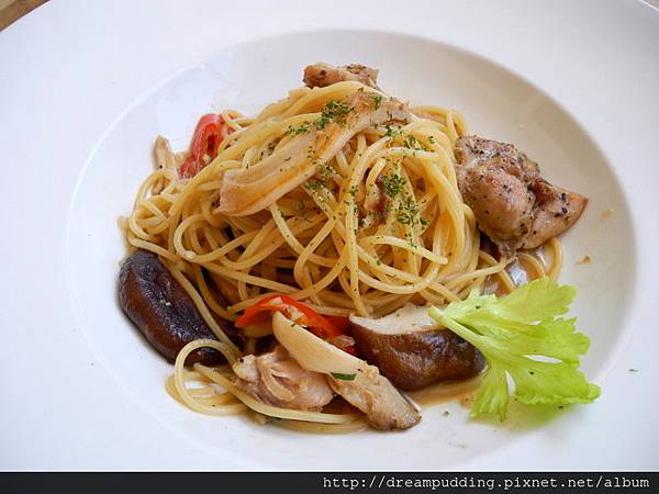蒜味辣椒野菇雞肉直麵,NT 238元。