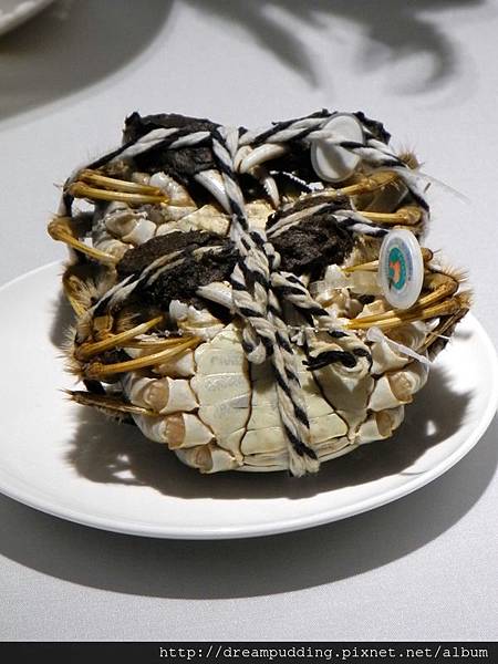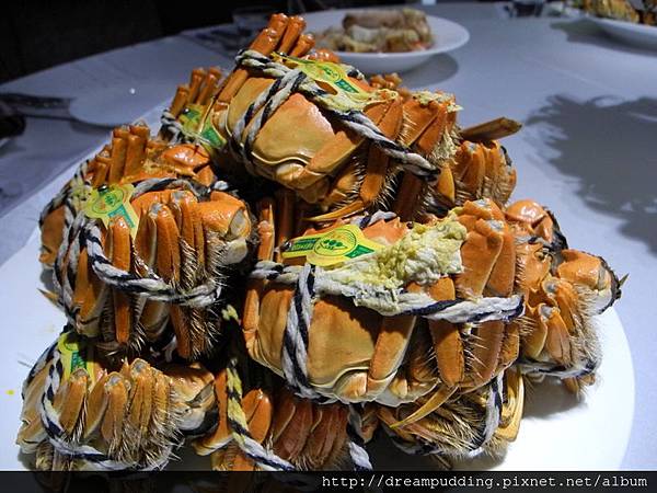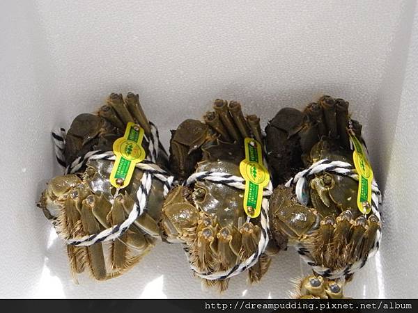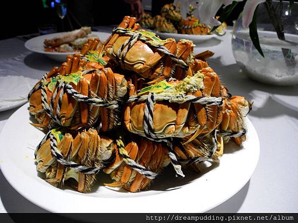 正陽澄湖的大閘蟹是有綁著雷射標籤圈圈的喔!那個可是大閘蟹的身分證!我們這天吃的大閘蟹是友人貴婦B在四季柔國際企業有限公司服務的朋友,每年大閘蟹季節都會大快朵頤的朋友可以參考一下,現在還有免運專案。