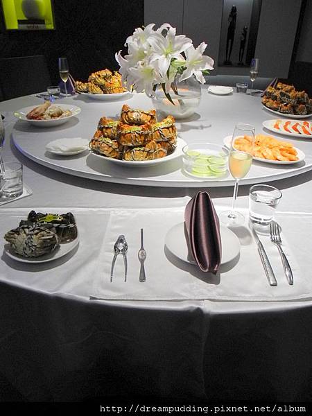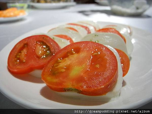 Mozzarella Cheese蕃茄沙拉,整晚我吃最多的就是這個,我超喜歡吃Mozzarella Chees的,口感濃郁又清新,搭牛番茄吃最棒了,別人吃螃蟹我吃Mozzarella Cheese,大家吃螃蟹吃得很過癮,好像都沒人發現其他的菜有一半都是被我吃掉的