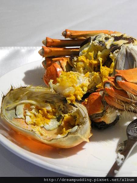 黃澄澄的蟹膏很鮮甜,愛吃蟹的女神手腳十分俐落,我吃完一隻的時間,是她已經吃了4、5隻的時間(驚)