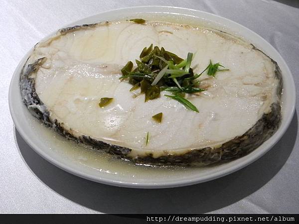 頂級南非圓鱈,這個比較少廠商代理,採用清蒸,可是口感散發著細微的奶油香氣,口感細緻,不大吃熟魚的我都覺得很好吃,多夾了好幾塊,別人吃螃蟹我吃圓鱈^0^