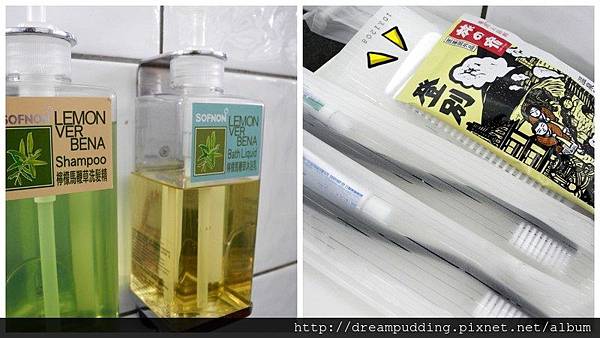 部分房型有浴缸,還會附上泡澡的溫泉粉,洗澡跟沐浴使用的是清爽的檸檬馬鞭草香味。
