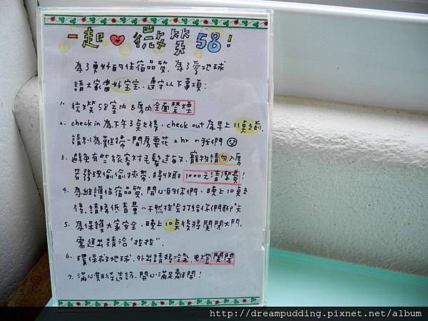 手寫的住宿須知,拉拉的字好可愛^^