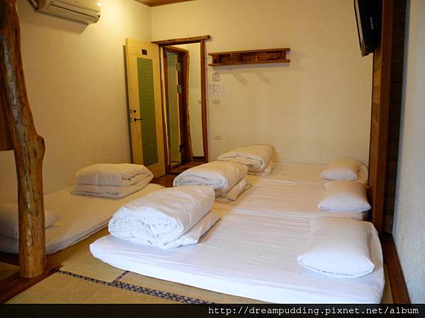 我們住的是和室房,有帶小孩的朋友很推薦預定這間喔,因為有塌塌米,小朋友可以在這裡爬來爬去,而且家具是用香杉打造的,所以房間有股自然的清新味道,有股身在森林裡的感覺。