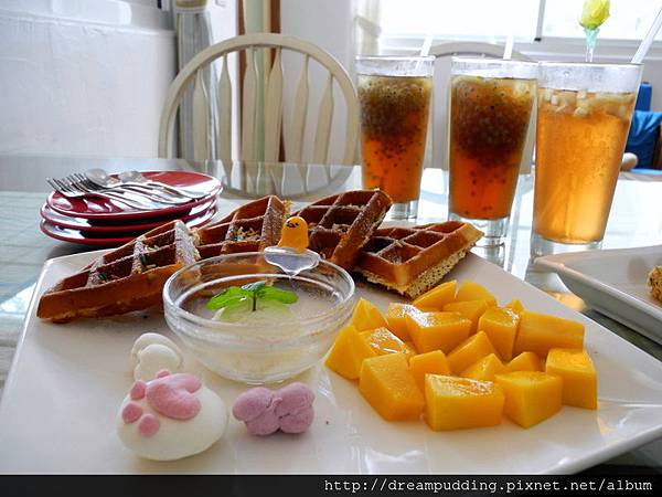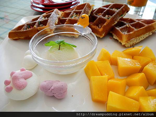 鬆餅外微酥內溫暖,還有季節水果跟香甜的冰淇淋,我喜歡軟中帶點微Q的貓掌跟戀心棉花糖。
