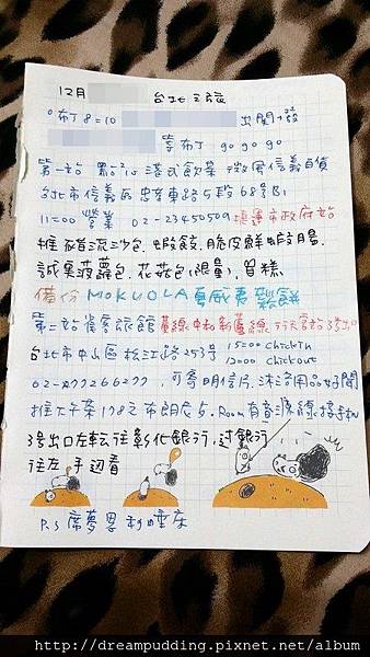 這次的台北之旅雖然只是短暫的兩天一夜,但我還是寫了行程表,畢竟我真的很路癡,所以目的地路線還是寫出來並且清楚的好。是說上次去排添好運的時候有嚇到,在寒風中排了1個小時又45分,而且還是平日,所以這次吃點點心也做了排隊的心理準備,可是畢竟過了將近一年,年紀又更大了一些,所以這次就打算如果要排很久的隊就不排了,因此就加了B計畫,如果沒有吃點點心再去另一間也是在微風信義裡面的MOKUOLA夏威夷鬆餅。