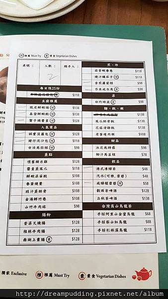 點菜單,FB粉絲頁也有完整的菜單可以點選喔^^,價位的話跟添好運差不多,每一道大約都是100初。