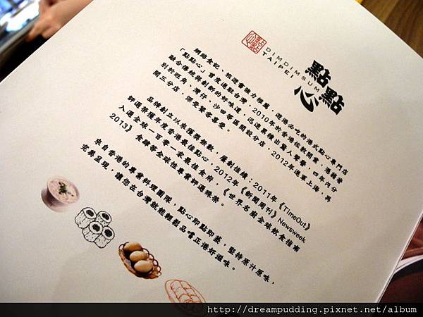 點點心在香港被喻為是添好運的最大勁敵,除了在香港有多間分店,也在上海開設了分店,接著,台灣也有了,是藝人棒棒堂男孩阿緯引進的喔!是說點點心在香港有多紅呢?非常紅喔!2011年《TimeOut》評選榮獲年度香港最佳點心,2012年《新聞周刊》 Newsweek入選全球一百零一家最佳食府,《世界名廚全球飲食指南 2013》 食肆等全球性專業評選殊榮。(部分資料擷取自點點心FB粉絲頁)所以當得知點點心要在台北開的時候,就下定決心一定要找天來吃