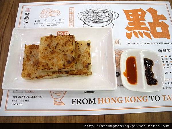 香煎蘿蔔糕,NT 98元+10%。會附上兩種沾醬,一個辣一個不辣。