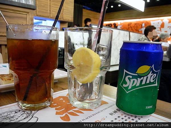 左邊是港式凍檸茶,NT 48元+10%,友人覺得有些淡;咸檸檬雪碧,NT 58元+10%。