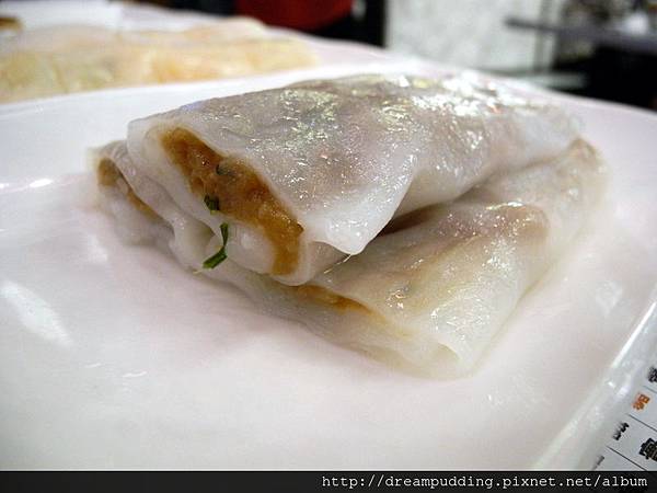 腸粉裡面有一層脆脆的是米網皮,吃起來有油條的酥脆卻不油膩,還吃的到鮮彈的蝦肉,好吃!