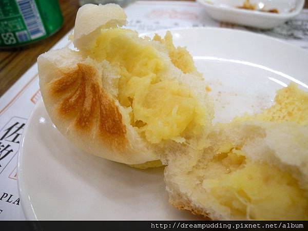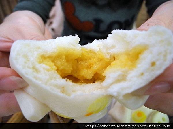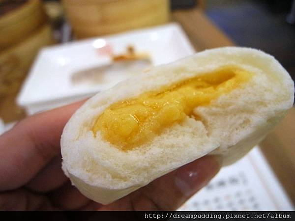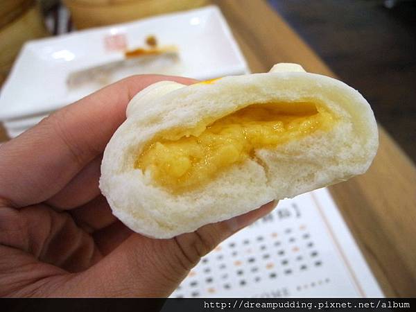 包子體是軟綿帶點蓬鬆的,內餡有加了鹹蛋黃,吃起來有泥沙感,不會甜膩。
