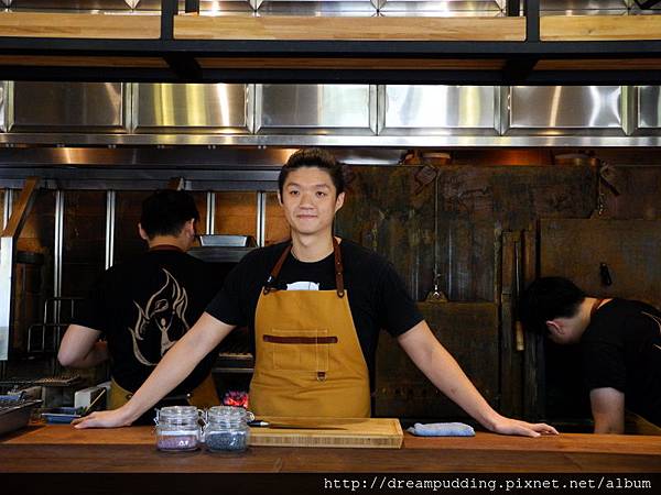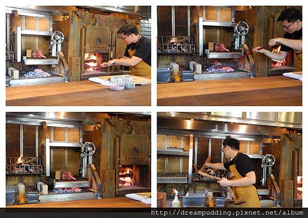 花費鉅資的就是這套原木燒烤烹飪廚具了,真的很原始的燒柴點火烹調,而所有原木均是荔枝木跟龍眼木,這套烹飪廚具可以燒烤任何食材,我們這天吃的燒烤料理都從這裡出現,看著師傅在這添柴、翻烤、調整食材位置的,真的很費工。