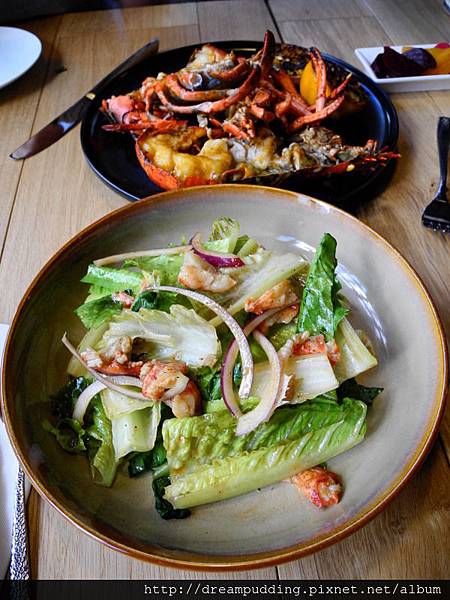 這天的龍蝦除了碳烤龍蝦之外還有一道龍蝦蘿蔓生菜沙拉,這道沙拉我超喜歡的,蘿蔓清脆之外,醬汁也十分清爽。