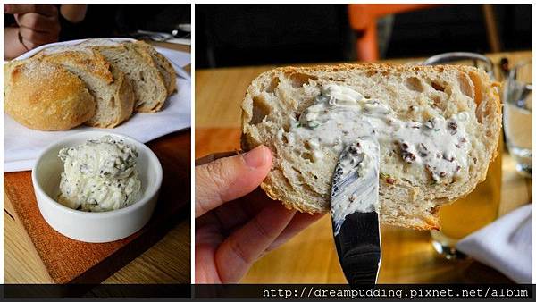 麵包是每日限量的,是說那個奶油讓人驚豔,初嚐會有一種熟悉的鮮甜帶鹹的感覺,一問之下,原來加了豆鼓,我都不知道豆鼓可以加到沾醬裡變得那麼西式,而且完全無違和感,真的很特別。