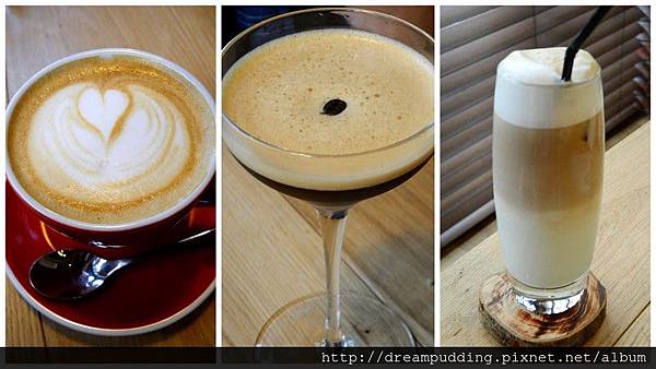 飲料女神偏愛中間的冰美式,特別的是這是用shake的方式搖出來的,口感清冽順口;我則獨愛拉了愛心花的卡布奇諾綿密細柔的奶泡,謙喜歡最右方的冰拿鐵。