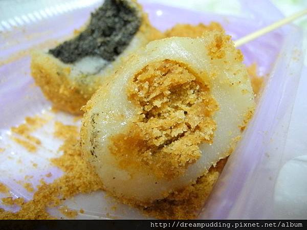 原味的就是麻糬加花生粉,會有許多小小塊的,本來以為會跟其他口味的麻糬吃起來差不多,就是沒餡的麻糬;可是沒有想到吃起來口感單純,更是另一番風味說。