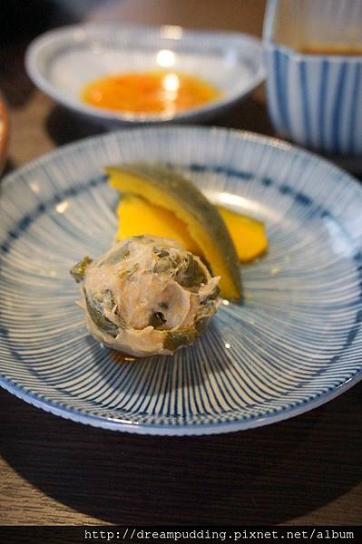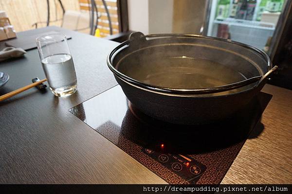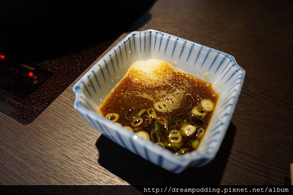 一開始帥氣斯文的服務生會送上和風沾醬,由金桔汁、檸檬汁跟柳橙汁還有精選醬汁特調而成,清酸中帶點甘,煮好的菜跟肉沾著吃都很清爽。