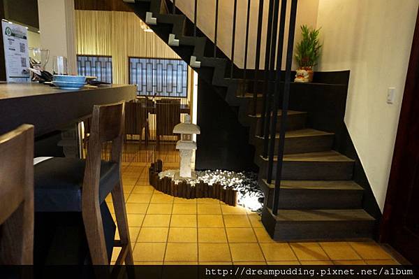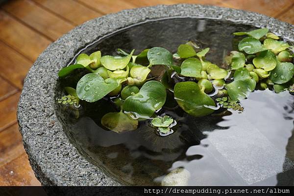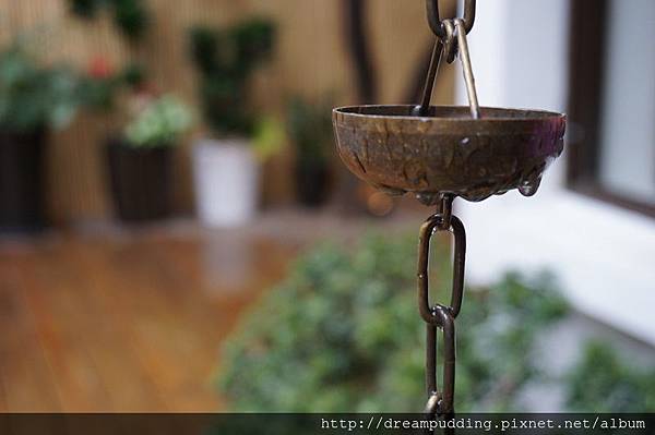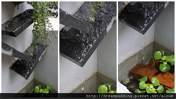 庭院許多擺設都經過了巧思設計,連雨滴的滑落都可以層層疊疊的經過石板,很有童趣。