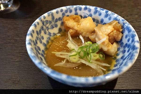 這天的當日小菜是日式滷豬筋,底下的白蘿蔔滷到入味清透,清甜飽滿,豬筋Q軟軟的。