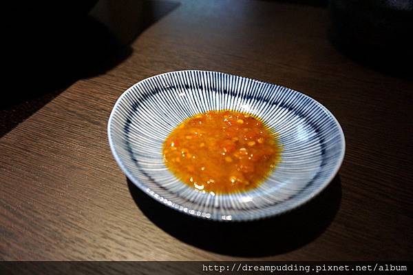 .....我又忘記是生辣椒醬還是剁辣椒醬,這服務人員顏值優真的是一大罪過,我真的很少吃一頓飯下來然後都記沒清楚服務人員的介紹,不過重點是這個醬有辣椒沒錯,會辣。