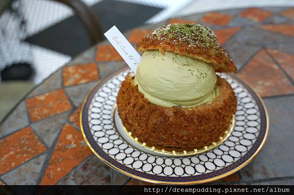 在初鍋物吃飽之後,我跟友人還跑到山姆安娜買麵包,這天很幸運的還買到每次來都被預訂且銷售一空的抹茶布丁泡芙,那內餡香濃細緻帶點茶香,真的很好吃。