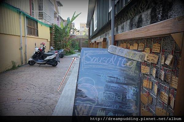 從這個招牌的巷口轉進去喔!是說招牌上面也有箭頭,我第一次來的時候完全沒注意到(暈),完全以為莎莎莉朵是照片裡右邊巷口這間黑色鐵門的。