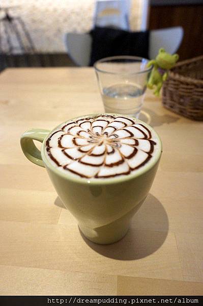 友人弟弟則加價換了拿鐵,還有鮮豔的拉花。