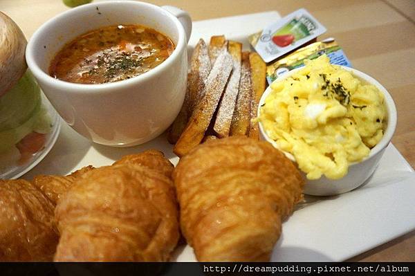 可頌不會過甜,帶點鬆軟微甜;地瓜角熱燙綿的好吃且不油膩,炒蛋也滑嫩。