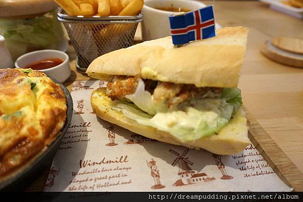 這個炸雞莎莎堡很好吃,雞肉外皮炸得略乾酥,但卻不柴硬,內部的雞肉有著細微的肉汁,搭的是我喜歡的甜潤的塔塔醬,日本小麥粉所製成的小法國麵包體微酥有嚼勁,是好吃的麵包,這個我蠻喜歡的。