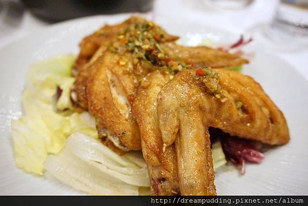 芫萎籽椒麻雞翅,單點130元,這必點!雞翅炸的微酥但裡面肉質細嫩,酸中帶辣的又有一些些的嗆,他是很有層次的一隻雞翅。
