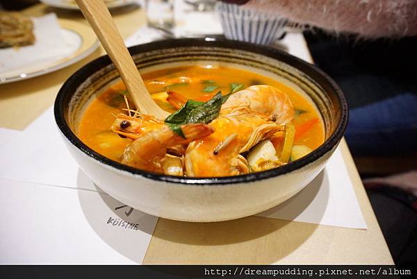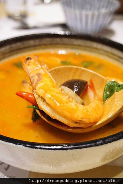 這天的附湯是鮮蝦酸辣湯,人多的話,主廚會用成一大盅讓客人自己分享。