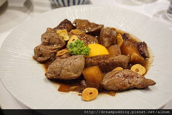 特選美choice牛菲力月見香蘋奶油燒,單點250元,牛肉很軟嫩且多汁,跟蛋黃一塊攪拌之後還多了潤甜感,雖然有幾塊肉有比較耐嚼一些,但整體而言是很好吃的!