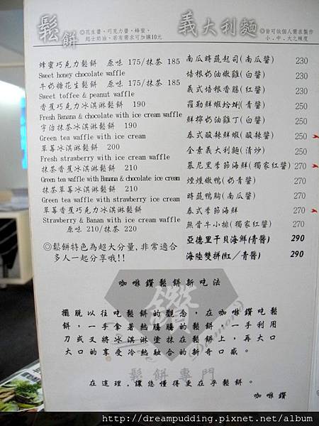 主要有鬆餅跟義大利麵,也有針對顧客做套餐系列,2人、3人、4人都有。
