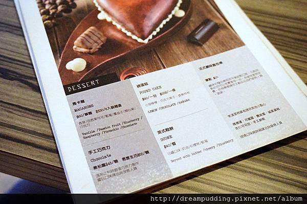 MENU有甜點介紹,不過不是每一項都有喔!要以現場甜點櫃為主,除了甜點還有一些輕食。