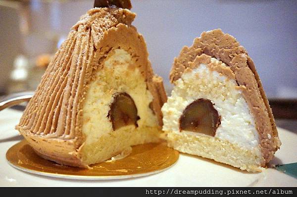 栗子泥口感綿柔帶點順,內層有輕柔的慕絲體,還有整顆栗子,口感多層次帶點綿柔的幸福感。