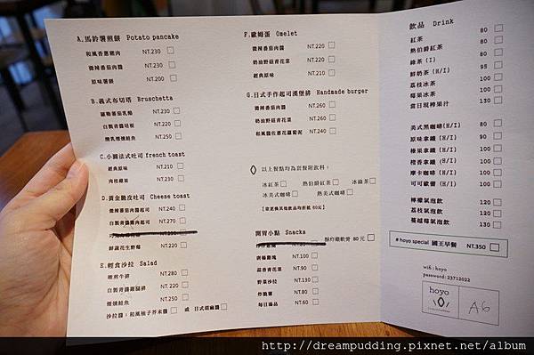 而FB粉絲頁上有完整的MENU,有興趣的朋友可以連結到hoyo粉絲頁,我只有PO其中的幾張menu照片喔!