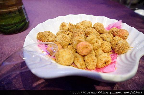 我真的很喜歡吃這種炸過的紅白小湯圓,因為會裹上我喜歡的香濃花生粉。