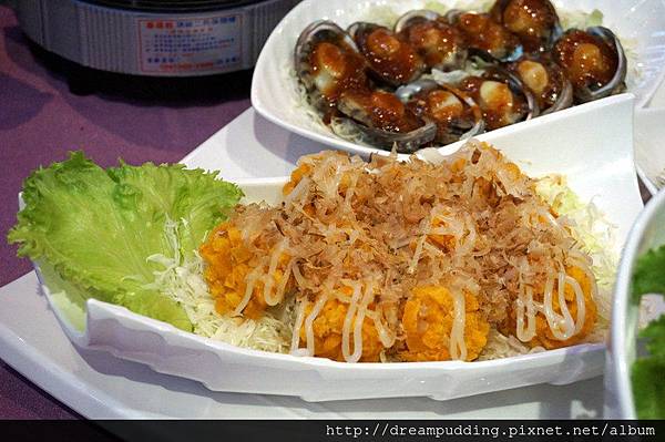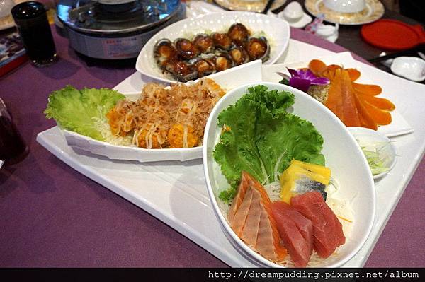 海鮮拼盤有生魚片、炸花枝還是章魚丸我忘記了>////<、還有鮑魚跟烏魚子。