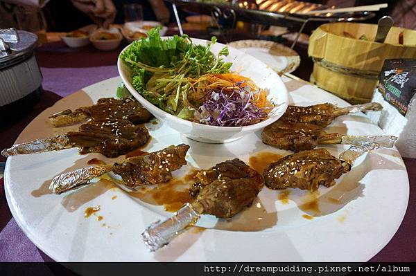 紅酒羊肩排,口感微嫩帶有嚼勁,骨頭部分包有鋁箔紙,讓賓客可以拿起來啃咬卻不沾手。